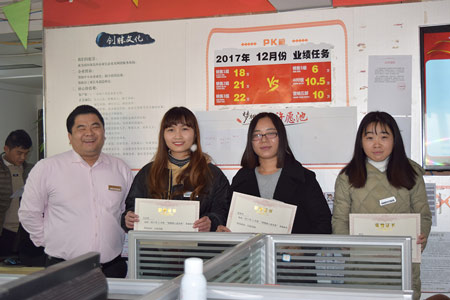 3、 艷梅(11月份個(gè)人業(yè)績(jī)季軍獲得者):11月份個(gè)人業(yè)績(jī)季軍獲得者,這是來(lái)創(chuàng)勝以來(lái)第一次拿到個(gè)人業(yè)績(jī)前三名,來(lái)公司也大半年了,一路走來(lái)非常不容易,從最初一點(diǎn)點(diǎn)業(yè)績(jī),一直做到第三,其中需要分享的就一句,一步一個(gè)腳印,業(yè)績(jī)不是急就能來(lái)的,急于求成,只會(huì)摔跟頭,只能一步步的來(lái),這樣才能取得好成績(jī)。