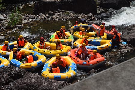 漂流歷時(shí)1小時(shí)左右,水流有時(shí)很急,有時(shí)又很緩,不管是在靜靜的漂移狀態(tài)還是猛沖下坡的激流中,都沒(méi)有激起我一點(diǎn)點(diǎn)的害怕感覺(jué),我想,我真的投入到漂流的享受與快樂(lè)中了。不過(guò),如果再有機(jī)會(huì),我想我應(yīng)該不會(huì)再去了,不是因?yàn)楹ε拢怯X(jué)得很多事情經(jīng)歷過(guò)就好。